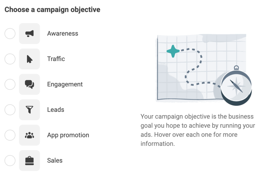 - Do I want awareness, clicks, engagement, leads, app installs, or sales?